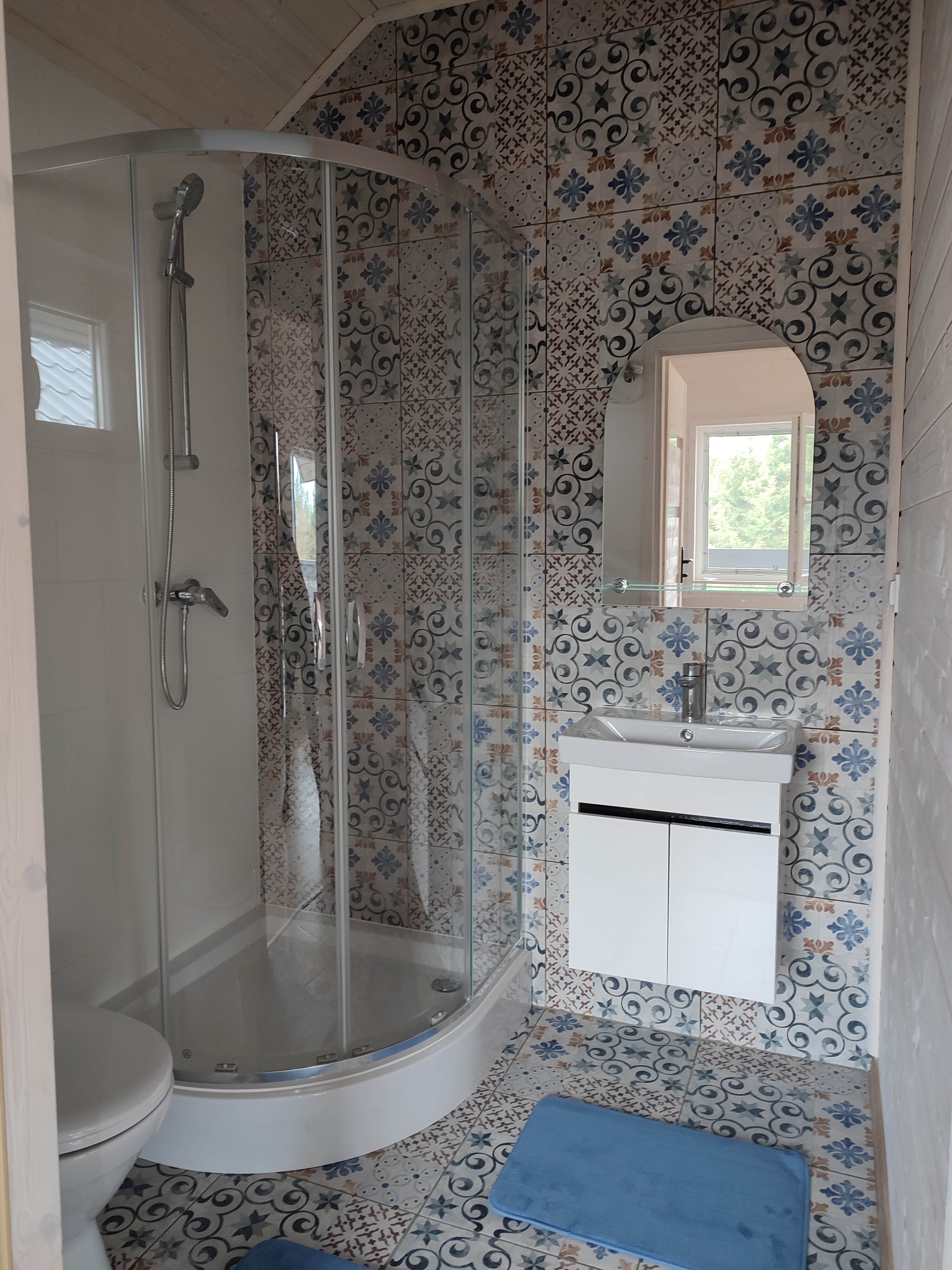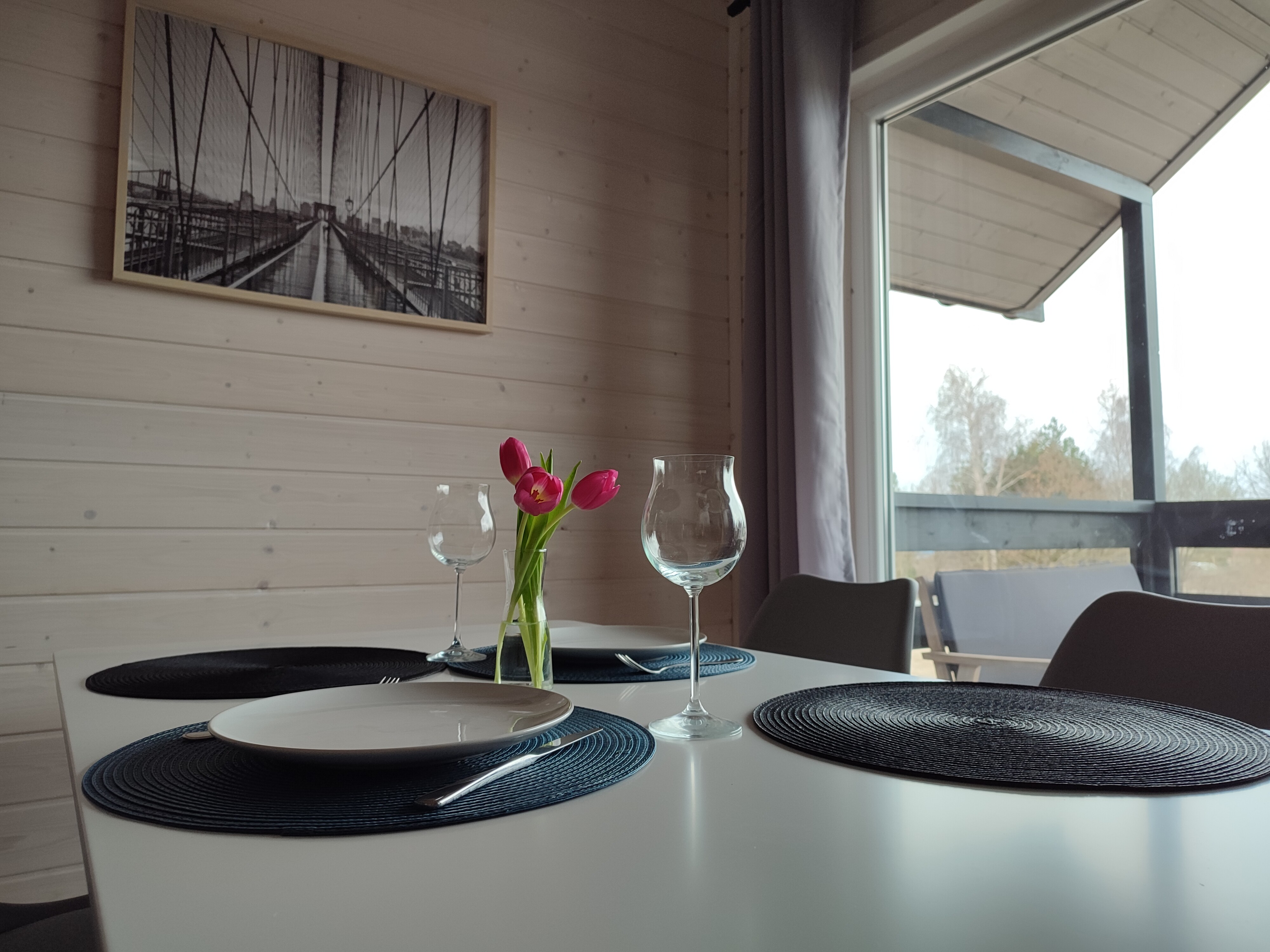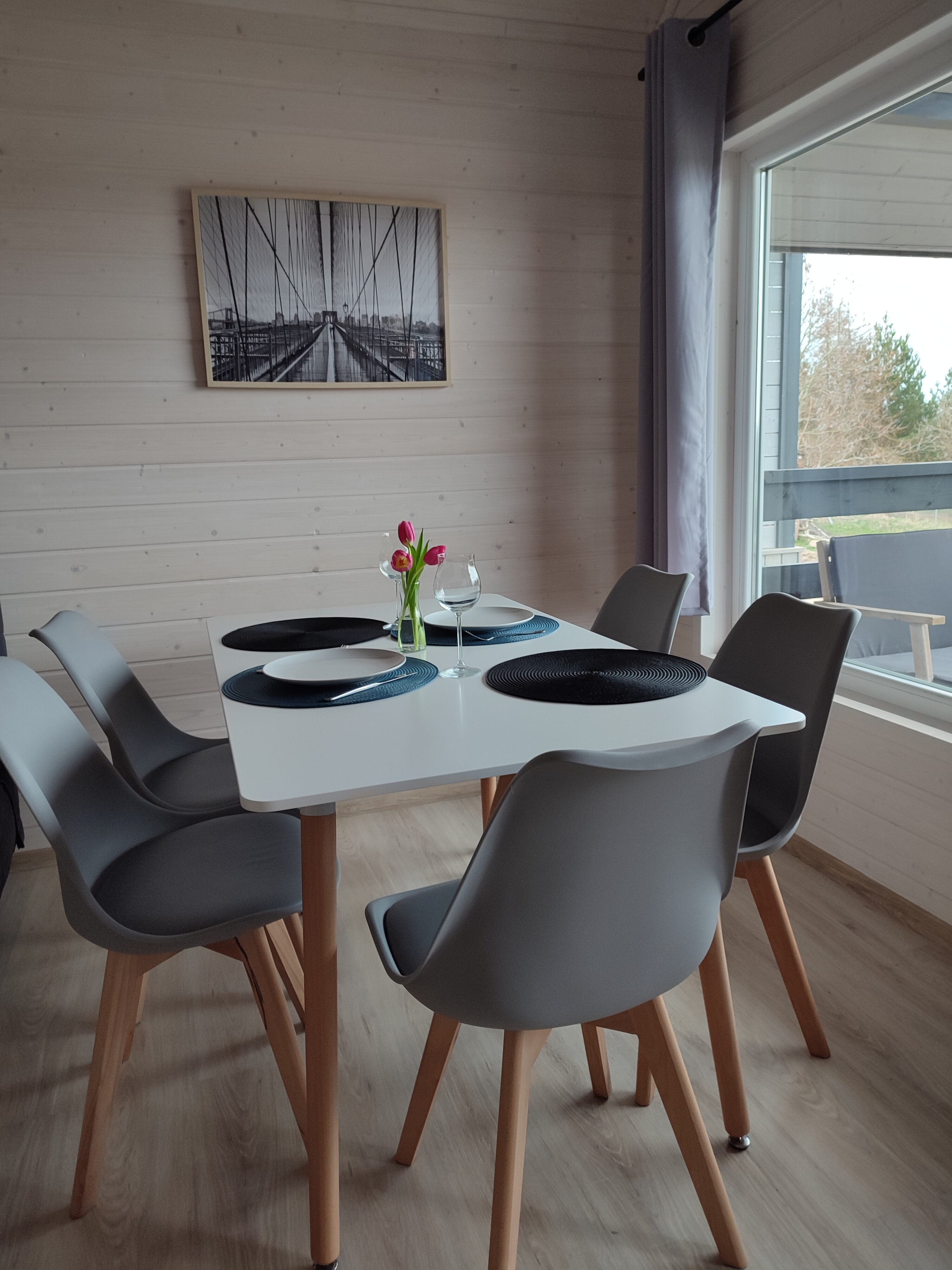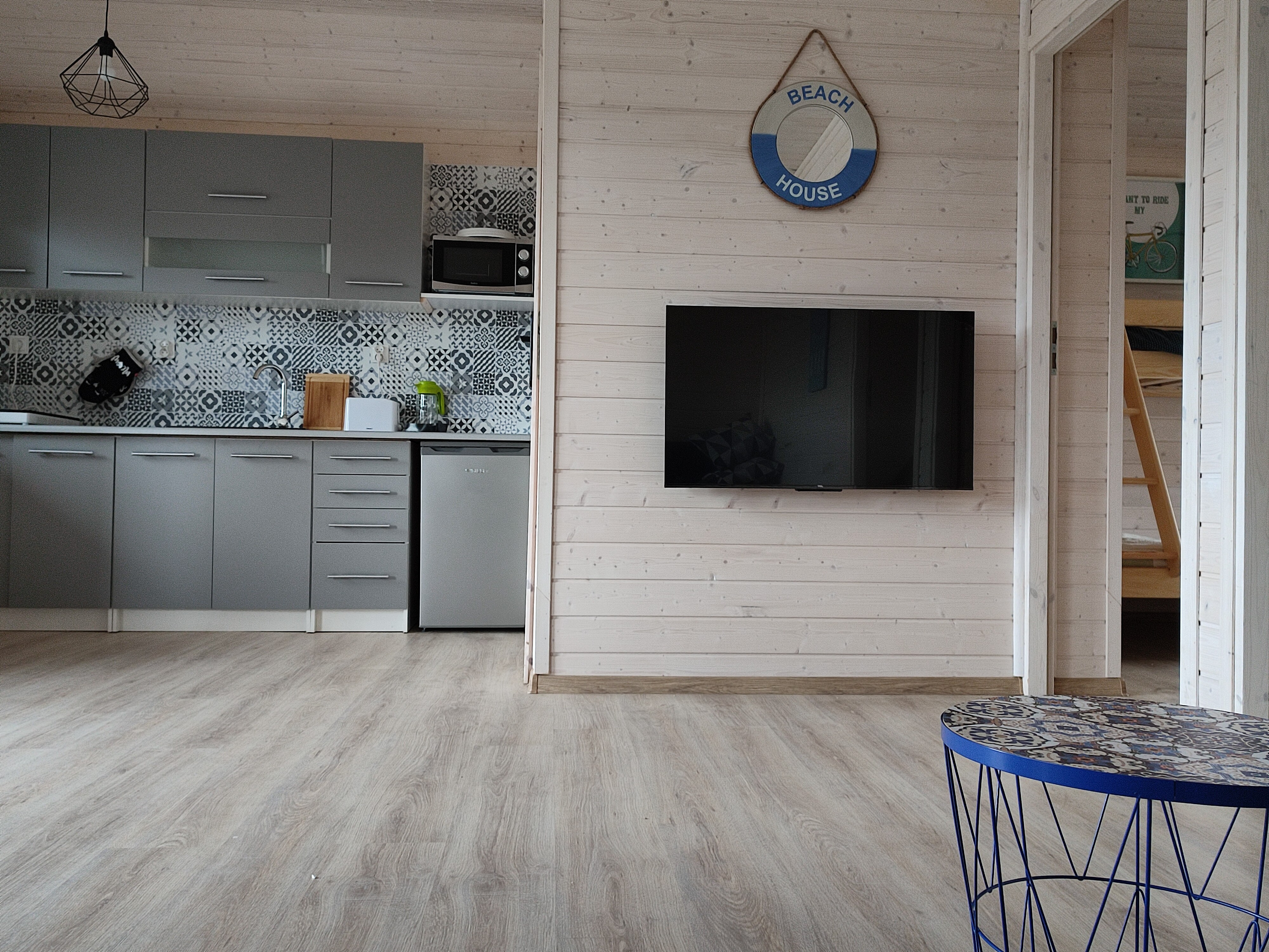 4 nowe domki z jedną sypialnią i własnym tarasem (typu bliźniak), wyposażona kuchnia, klimatyzacja (ogrzewanie), grill, bezpłatny parking