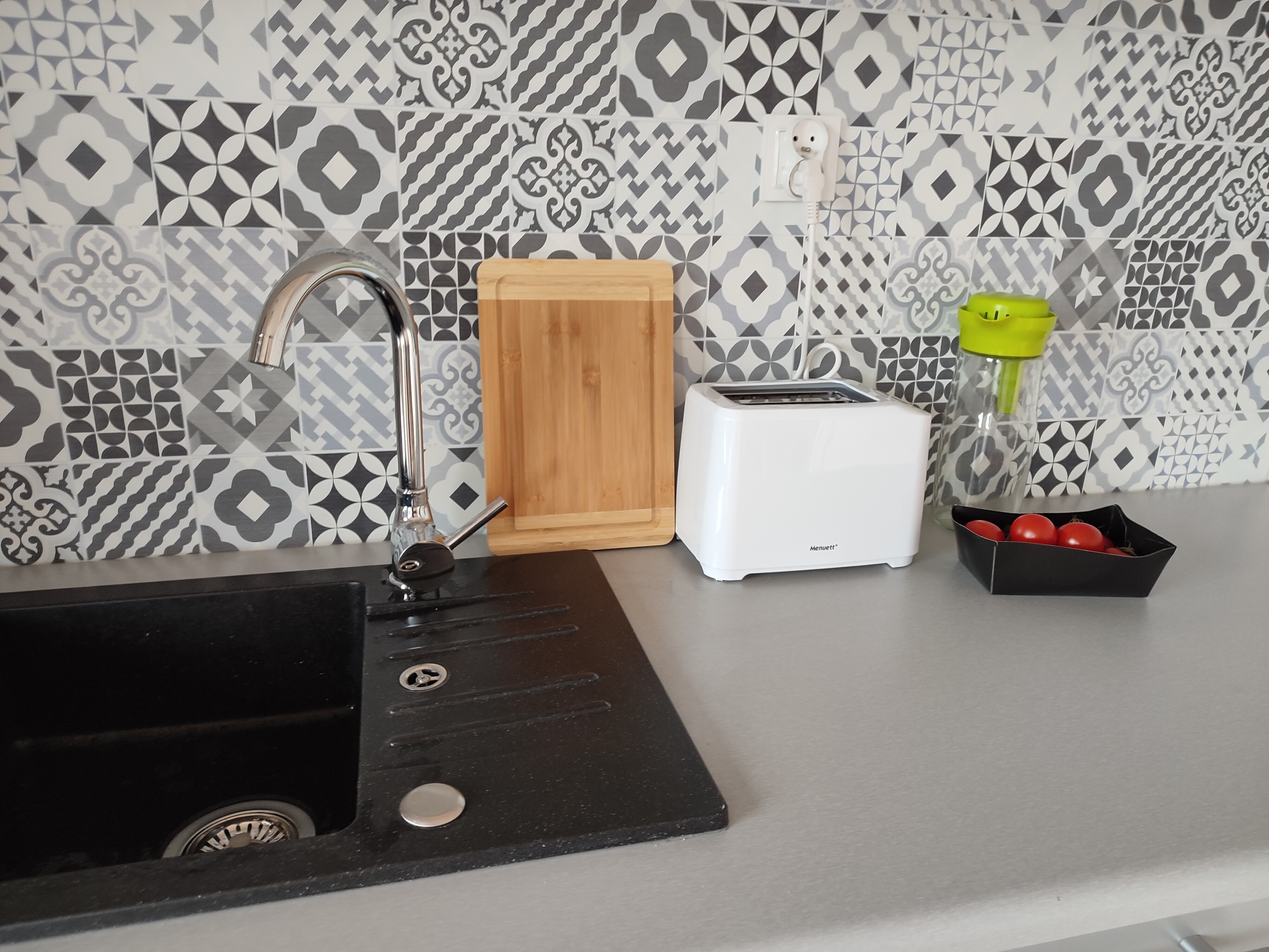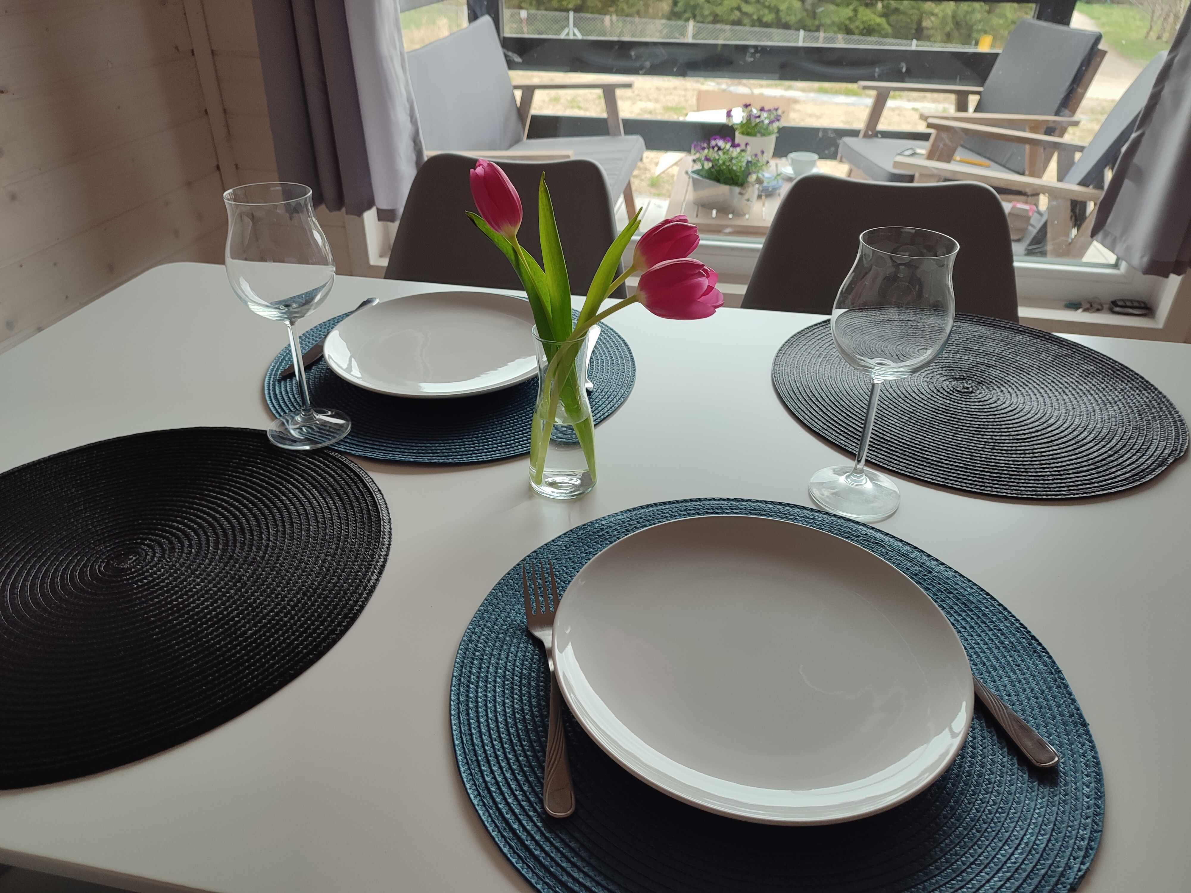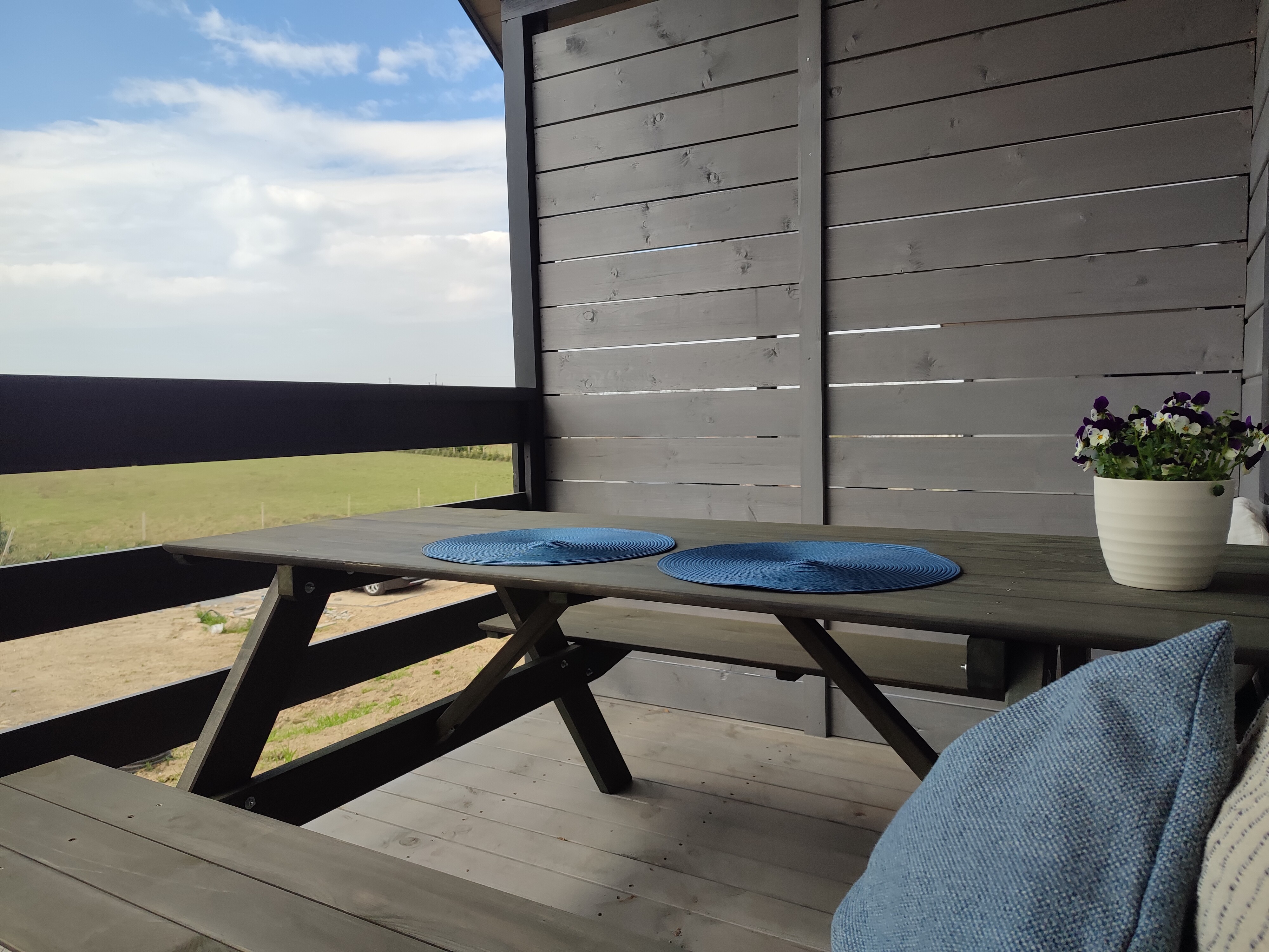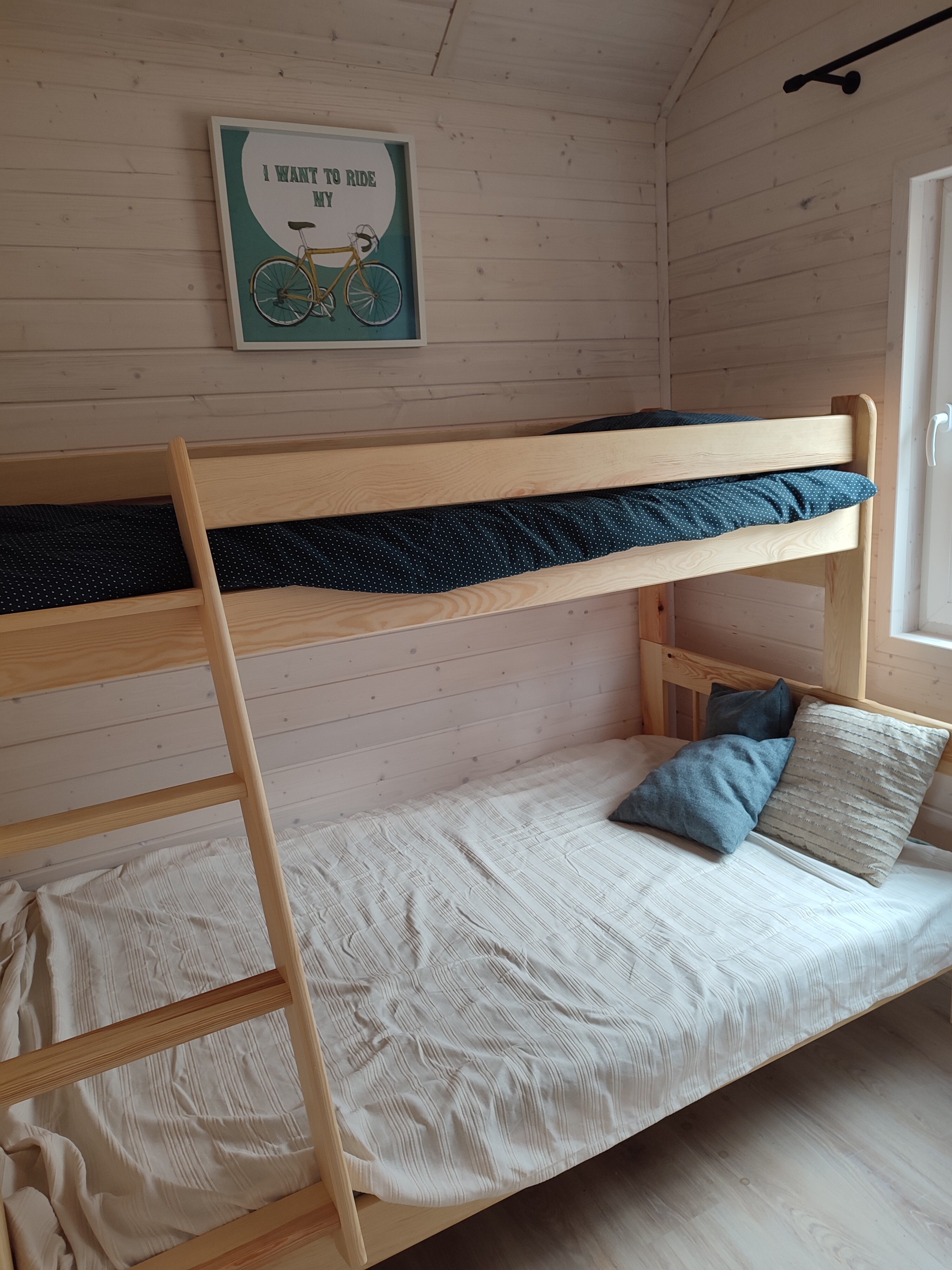 4 nowe domki z jedną sypialnią i własnym tarasem (typu bliźniak), wyposażona kuchnia, klimatyzacja (ogrzewanie), grill, bezpłatny parking
